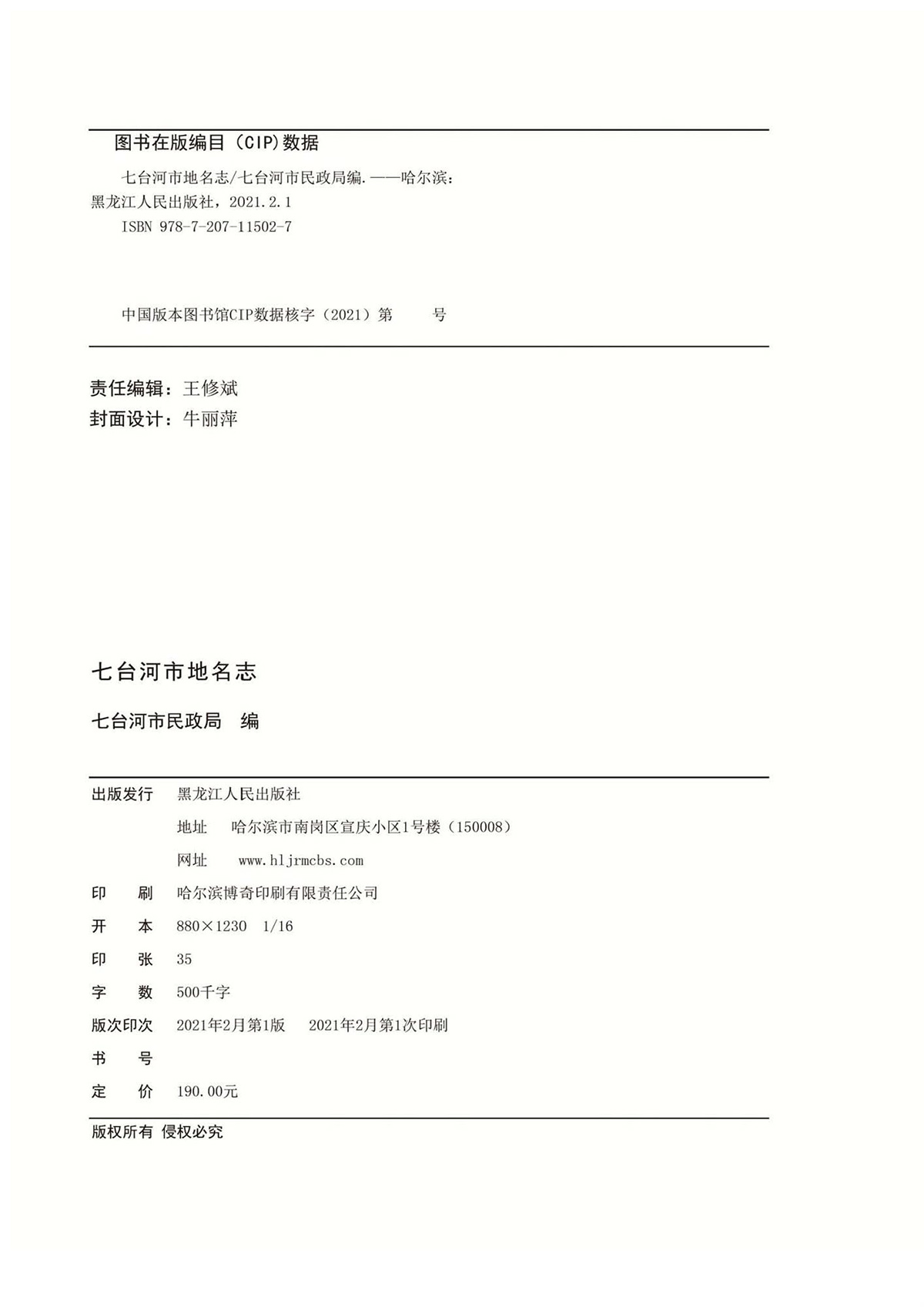 七台河市民政局、黑龙江人民出版社