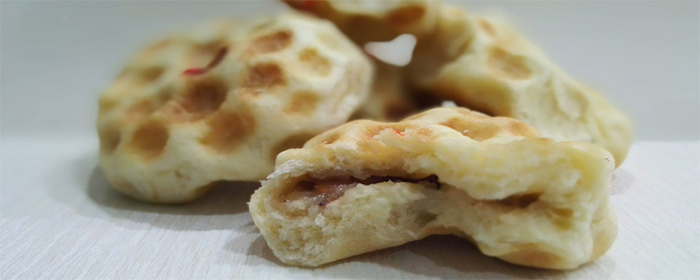 繁峙疤饼:是繁峙县别具一格的特色风味饼食,名闻遐迩。因饼上遍布疤痕而得名,亦名籽饼,始制于明代。其色泽金黄,不焦不糊,两面凸凹不平,酥脆香甜。