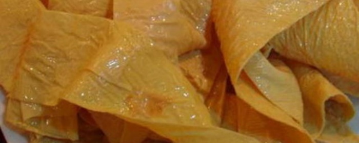 成品的百叶薄如纸,柔似绢。一张百叶,抓起来成团,放松后平展光滑,色泽金黄,放在眼底下细看,仿佛有豆油渗出。标准的百叶,用行话来说,一斤黄豆必须做到二十张,技艺高的可达二十二张。其要求只有一个字:薄!