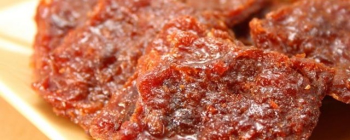 3.烘烤:将已卤渍好的肉片放在烤炉的铁网上烘烤,烤到半干时将肉片翻个,约2个小时,水分基本被烘掉,肉干达到红色透明时即可出炉。