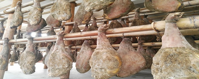 时令腌制:遵循“立冬开腌,立春结束”的传统,利用冬季低温抑制微生物,确保火腿自然发酵。