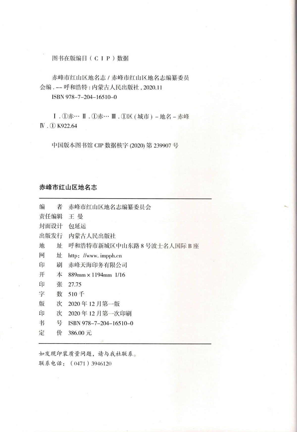 赤峰市红山区地名志编纂委员会、内蒙古人民出版社