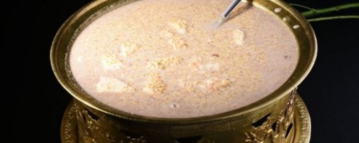 | 蒙古族传统饮品,以砖茶、牛奶等为原料煮制而成。味道浓郁醇厚,带有淡淡的茶香和奶香。可搭配炒米、奶豆腐等食用,是草原人民日常喜爱的饮品。 | |