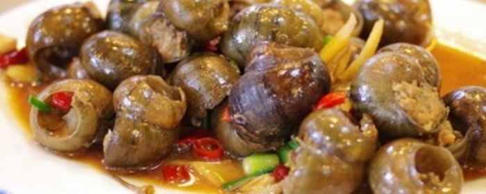 | 当地特色小吃之一。采用特制的酸辣椒,再放入葱、姜、三花酒等配料将田螺炒熟,口感酸辣鲜美。用牙签挑开田螺的顶盖,撮着嘴用力吸进去,吃完田螺再喝汤,其味道回味无穷。 | |