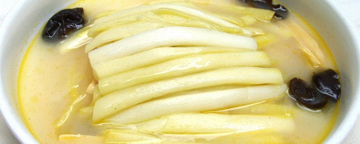 | 蒲菜为淮安当地的特产,而天妃宫所产的蒲菜甚是肥美,因而得此名。其菜体洁白如玉,食之肥嫩清香。烹饪时,保持菜肴原汁原味的同时,使之风味清鲜,脆嫩爽口。 | |