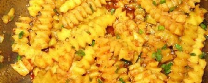 | 狼牙土豆在乐山可是风靡大街小巷的街头小吃,现做现卖的方式更让食客吃着放心。炸好之后的土豆条满街飘香,口感咸香麻辣。 | |