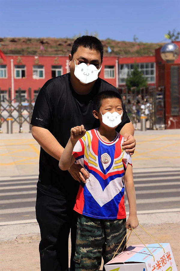 为山西省晋中市榆社县郝北镇前牛兰村小豪(化名)同学,送上了儿童关爱包。