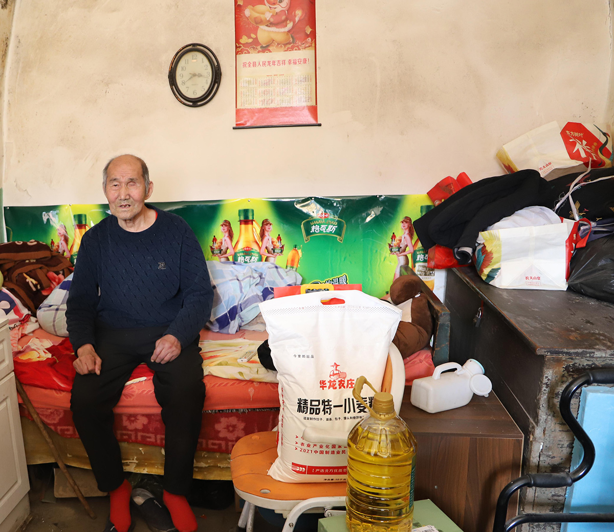 在这5户老人中,有2位老人身患残疾,已完全丧失劳动能力,生活难以自理。他们只能被困在狭小昏暗的屋内,独自面对生活的重重困苦。每一次起身、每一个动作,都显得那么艰难,却又无可奈何。