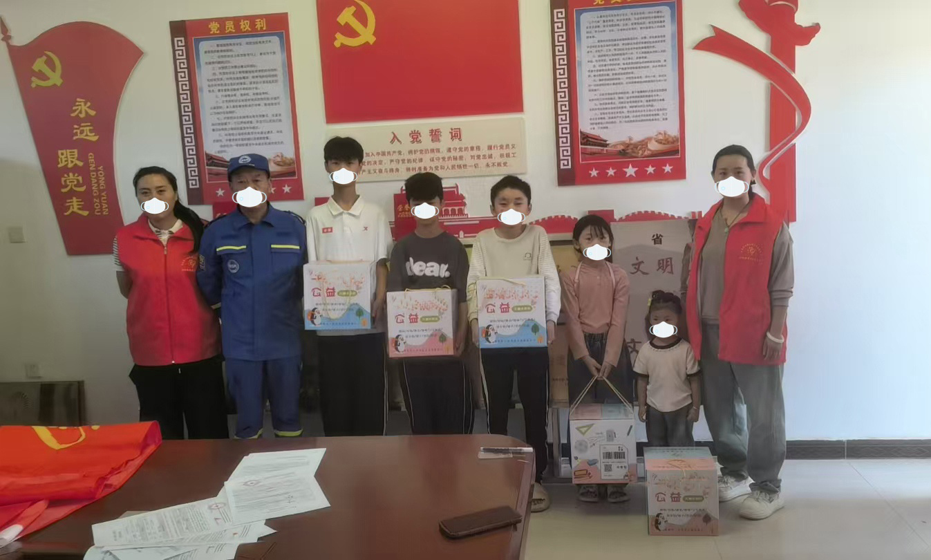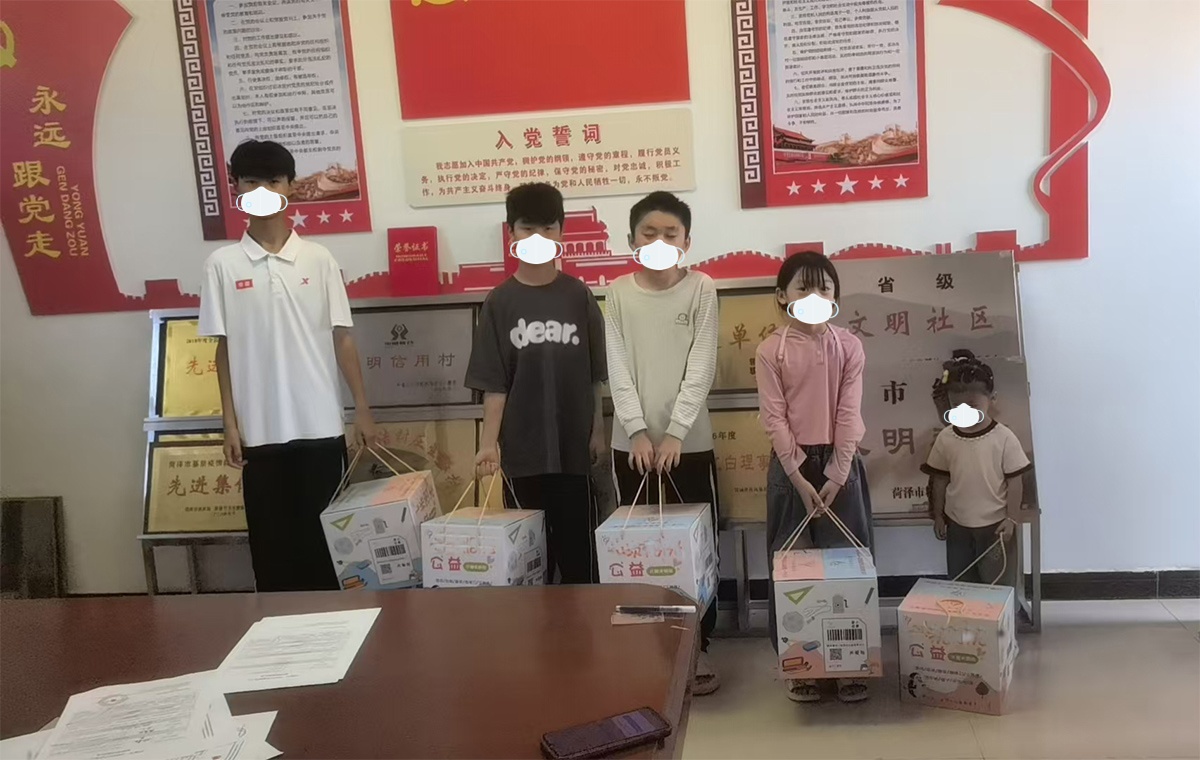 2025年10月底,困境儿童关爱计划项目组走进山东省菏泽市郓城县郓州街道姚垓社区,为社区内5名困境儿童送去关爱包。